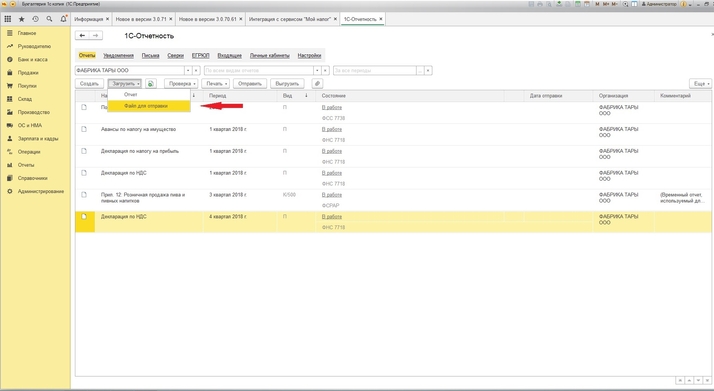 Файл отчётности, сформированный в другой БД или ПО в *.xml формате, для загрузки и отправки через сервис 1- Отчётность