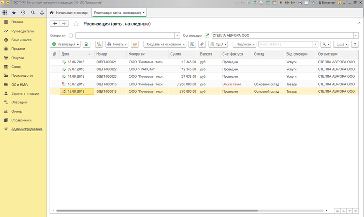 После отражения необходимых ручных корректировок нужно сохранить изменённый документ. Если открыть список документов, изменённый документ будет иметь специальную пометку в виде карандашика (рис.3).