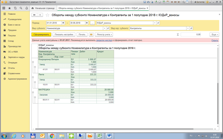 Чтобы посмотреть обороты между видами выбранных субконто и корреспондирующих субконто предназначен отчет "Обороты между субконто".