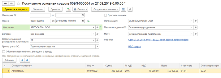 Подводя итог, можно сказать о том, что функционал программы позволяет выбрать пользователю несколько способов принятия к учёту объектов ОС. При правильном заполнении первичных документов по оприходованию основных средств в 1С мы можем быть уверены в том, что амортизация будет начислена верно и учтена в расходах.