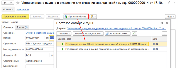 В программе при прямом порядке организация получает уведомление от ИС МДЛП, а при обратном – создаёт уведомление сама по кнопке «Создать» на рабочем месте МДЛП (рис. 1, 2, 3).