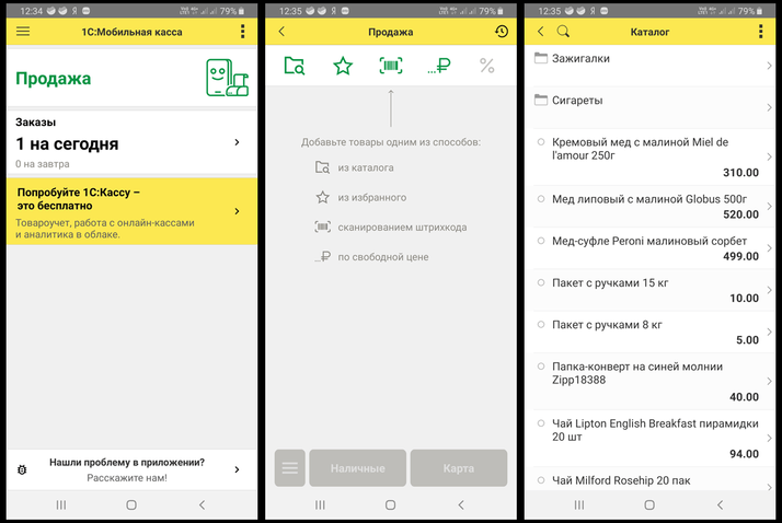 Приложение можно установить на планшет или смартфон сотрудника с операционной системой Android, создав тем самым дополнительную кассу без каких-либо вложений, и организовать курьерскую доставку. С помощью приложения можно заносить товары в каталог, производить ценообразование, осуществлять продажи и принимать оплату. Функционал данного приложения сейчас особенно актуален.