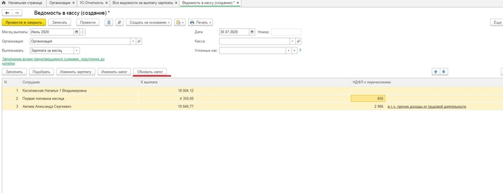 В программе 1С: Зарплата и управление персоналом, сначала проверяете ОКТМО в карточке организации (раздел «Настройка» - «Реквизиты организации/Организации» - вкладка «Главное» - «Изменить данные организации» - ссылка «История изменения регистрации» (рис.1)). В столбце «Действует с» у Вас должен быть указан месяц, с которого было изменение ОКТМО (рис.2). Чтобы обновились данные, Вам необходимо перепровести все начисления с даты изменения и по текущий период, после заходите в каждую ведомость на выплату, выделяете всех сотрудников и по кнопке «Обновить налог» (рис.3) у Вас изменятся данные ОКТМО. Чтобы это проверить, можете нажать на сумму налога и в столбце «Регистрация в налоговом органе» Вы увидите обновленные данные. После того как проделаете данные действия с каждой ведомостью, можете перезаполнять отчеты.