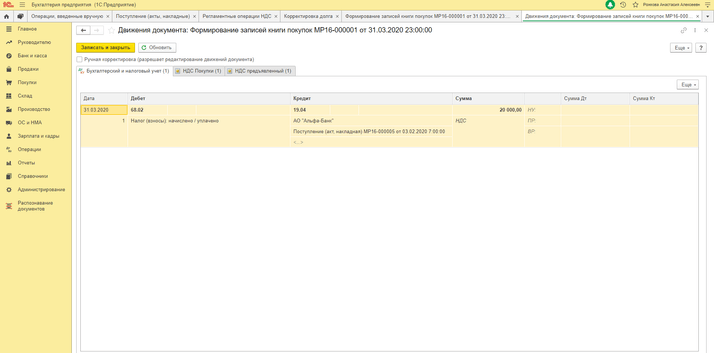 - Д19 К68 (формируется регистр «НДС Продажи»).