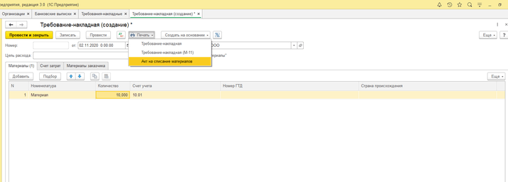 Другой вариант. Вы являетесь плательщиком налога на прибыль и должны иметь подтверждающие документы. Отражаем как поступление на счёт 10, далее списываем документом «Требование-накладная», то есть списали суммы со счёта 10 и включили в расходы для целей налогового учёта.