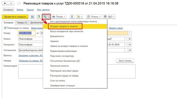 Такую операцию можно проводить самостоятельно либо по документу основанию. Чтобы совершить возврат товаров от клиента, последовательность действий здесь будет разниться.