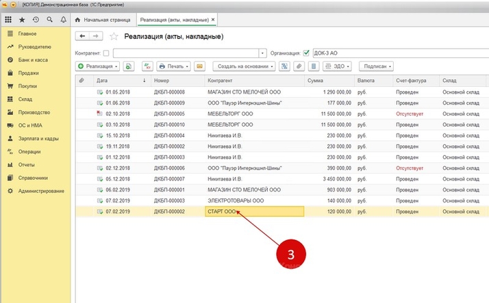 Появится окошко с операциями продаж. Найдите именно ту, по которой произошла реализация товара со склада. Откройте.