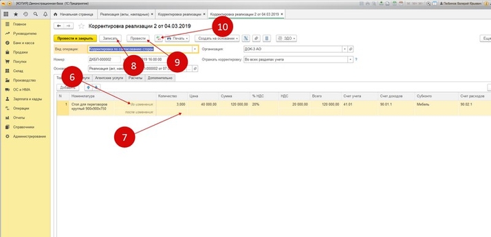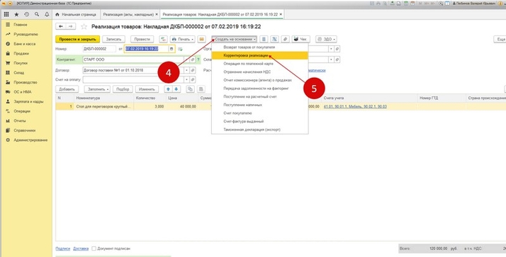 В реализации нажмите «Создать на основании». Выберите категорию «Корректировка реализации».