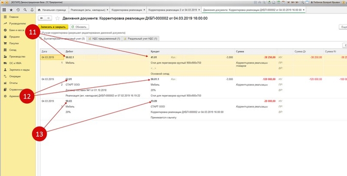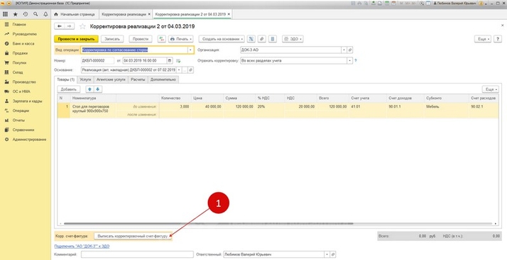 Для ведения учёта продавец через конфигурацию «Бухгалтерия» от 1С делает возвратные проводки и создаёт разные документы. Часто для этого используются документ продажи, книга покупок, откорректированный счёт-фактура. Последний документ составляется продавцом при коррекции цены на ТМЦ, отгруженные в прошедшем налоговом периоде.