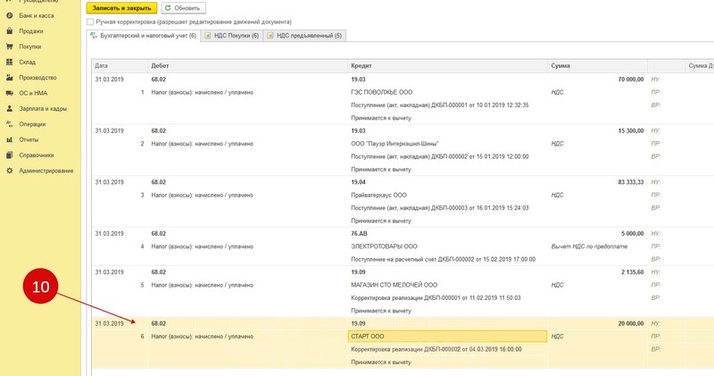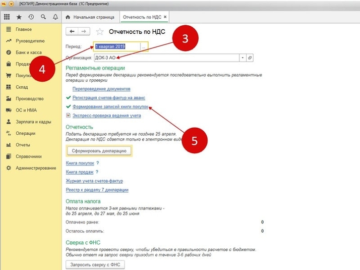 В окошке появятся операции с учётом НДС. Здесь указываем нужные сведения. Кликаем на опцию формирования записей в указанной книге.