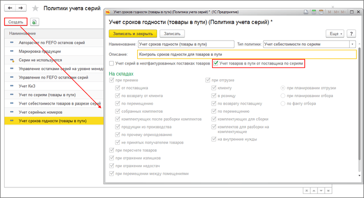 Если необходимо зарегистрировать несколько партий товаров с различными сроками годности, то следует разбить строку с товаром на несколько строк и для каждой указать свои параметры серии (сроки годности).