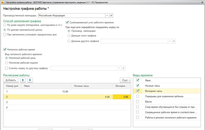 Заполняем график при неполном рабочем времени в 1С:ЗУП 8.3