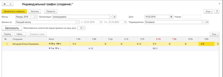 Заполняем индивидуальный график работы в 1С:ЗУП 8.3