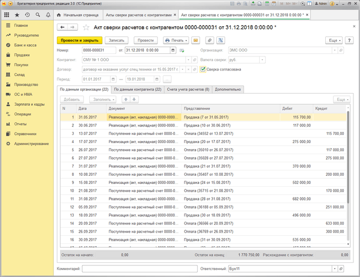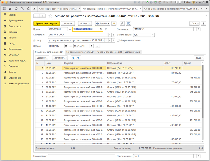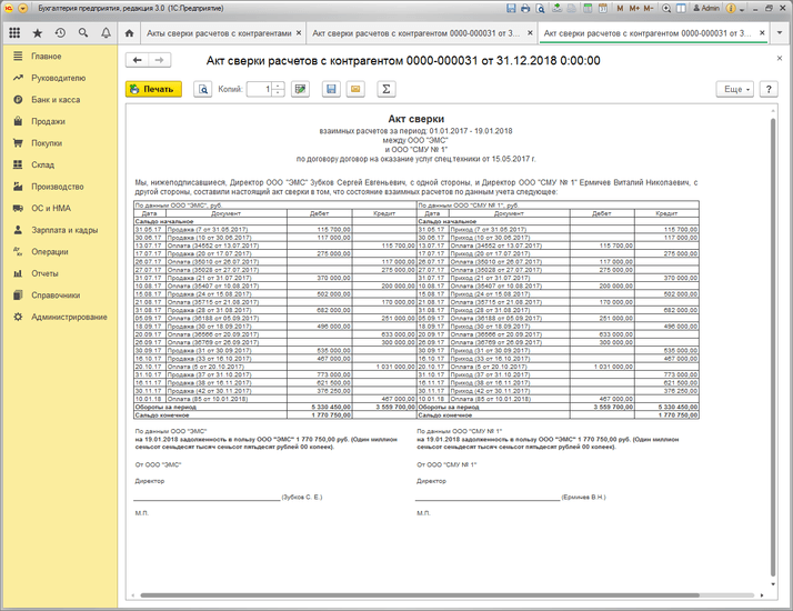 Таким образом, в статье рассмотрено составление акта сверки расчётов с контрагентами в 1С. Корректное и безошибочное заполнение акта влияет на правильность анализа взаиморасчётов с контрагентами.