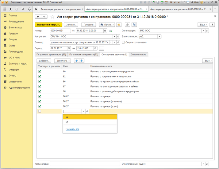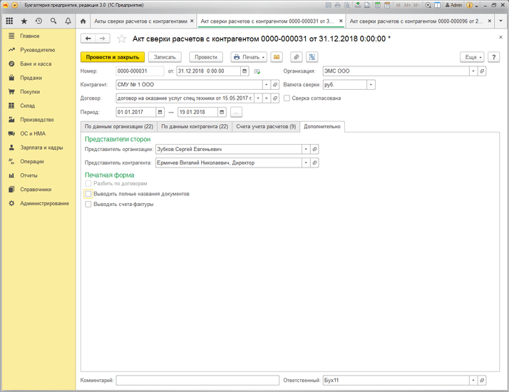 После согласования сверки с контрагентом ставится галочка «Сверка согласована», акт уже нельзя редактировать.