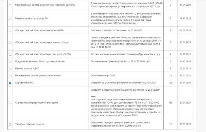 Во всех новых случаях обновления классификатора банков нужна действующая подписка ИТС. Также в новых версиях программы, начиная с 1С:Бухгалтерия 3.0 версии 3.0.87.28, классификатор банков поменял своё название. Теперь он называется «Справочник БИК».