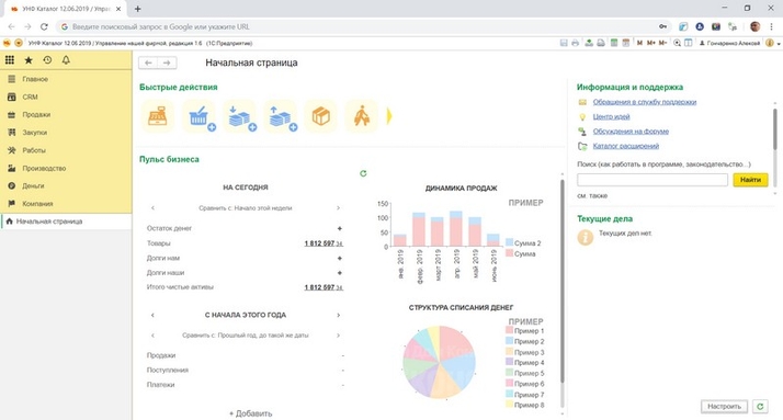 По данным статистики, в России на 2020 год работало почти 6 млн предприятий малого бизнеса. Не всегда размеры фирмы позволяют содержать в штате бухгалтера и кадровика или оплачивать услуги консалтинговой фирмы, но требования у налоговой от этого не меняются. В программе 1С:Управление нашей фирмой можно планировать продажи, распределять трудовые и материальные ресурсы. Функции ПО позволяют вести календарь выполнения заказов, закупки и отгрузки товаров, сравнивать плановые и фактические показатели. Платформу можно использовать для управленческого учёта на одной или нескольких фирмах.