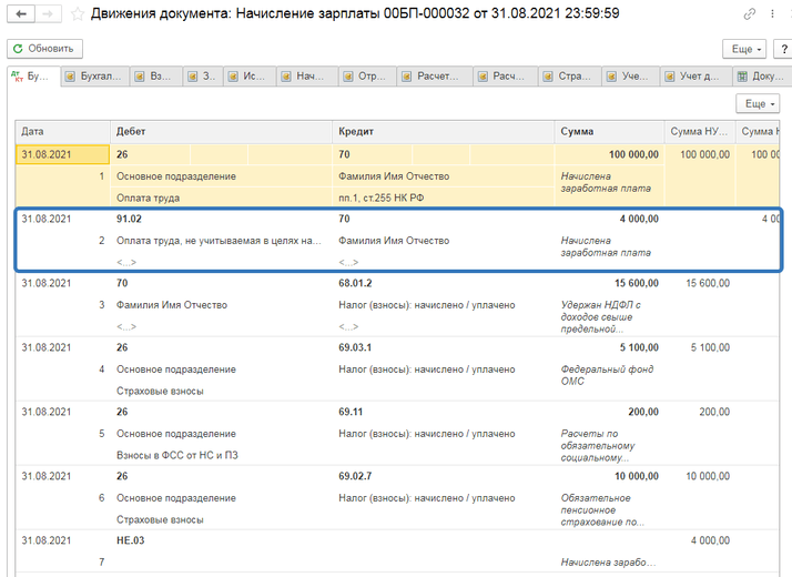 После того как все настройки сделаны, сохраняем вид начисления и переходим к его начислению для сотрудников.