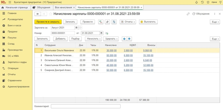Убедившись, что настройки учета заработной платы заполнены правильно, можно формировать начисление зарплаты сотрудникам.