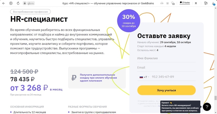 | HEDU | HR-менеджер | 5900 руб. в месяц | 1 месяц | Авторский курс от успешного предпринимателя | После обучения выдается сертификат негосударственного образца |