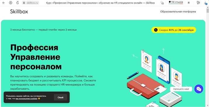 Образовательная платформа Skillbox разработала дистанционный курс обучения HR-менеджменту. Пользователям предлагают научиться формировать успешные команды сотрудников и развивать их. Кроме этого, в курсе уделяется много внимания изучению ключевых показателей, влияющих на эффективность управления персоналом. Дополнительно специалисты научатся планировать бюджет для развития HR в компании.