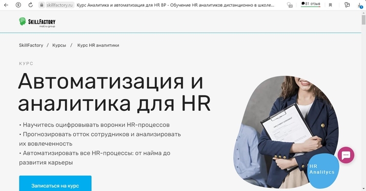 4. Курс «Автоматизация и аналитика для HR» от SkillFactory