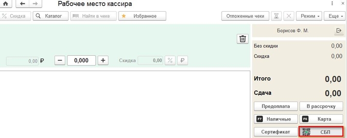 Теперь давайте рассмотрим, как же используется система быстрых платежей. После подключения СБП в рабочем месте кассира на панели справа появится новый способ оплаты ‒ «СБП» (рис. 1).