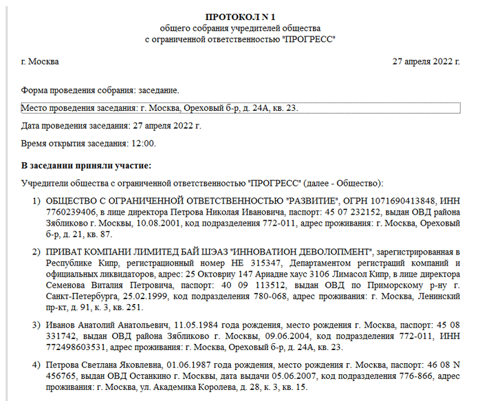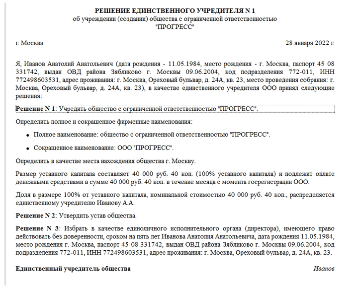 Учредительный договор потребуется, если учредителей общества несколько. Если ООО создает один учредитель – хватит и решения о создании ООО, о котором расскажем ниже.