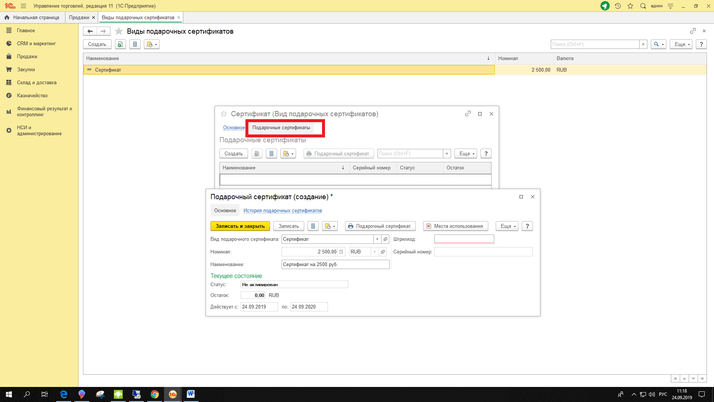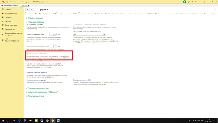 Как в 1С:Управление торговлей ред. 11.4 осуществить продажу подарочного сертификата?