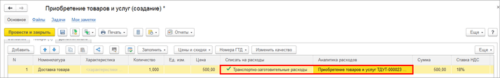 Как в программе 1С: Комплексная автоматизация ред. 2.4 учесть дополнительные расходы (транспортировка, хранение товара) при поступлении товара?