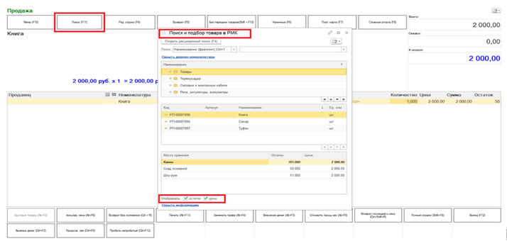 Как в 1С:Розница ред. 2.2. подобрать товар в чек с применением кассы ККМ?