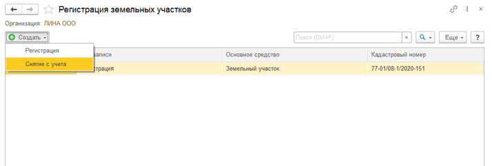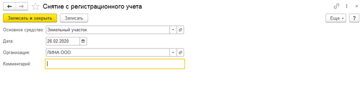Как в программе 1С:Бухгалтерия предприятия ред.3.0 снять с учета земельный участок?