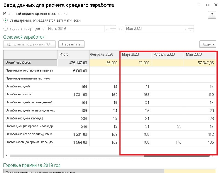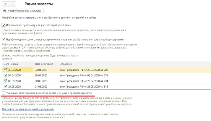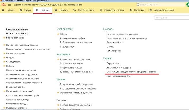В последних обновлениях программы 1С:Зарплата и управление персоналом (с версии 3.1.14.61) для этого предусмотрена специальная настройка. Заходите в раздел «Настройка» - «Расчет зарплаты» - убираете галочку «Учитывать оплачиваемое нерабочее время и суммы в среднем заработке» (рис.1). После переходите в раздел «Зарплата» - «Сервис» - «Обновить данные для расчета среднего заработка» (рис.2) - выбираете период с апреля по июнь. Теперь при создании к примеру документа «Отпуск», нерабочие дни не будут включаться в расчет среднего заработка (рис.3).