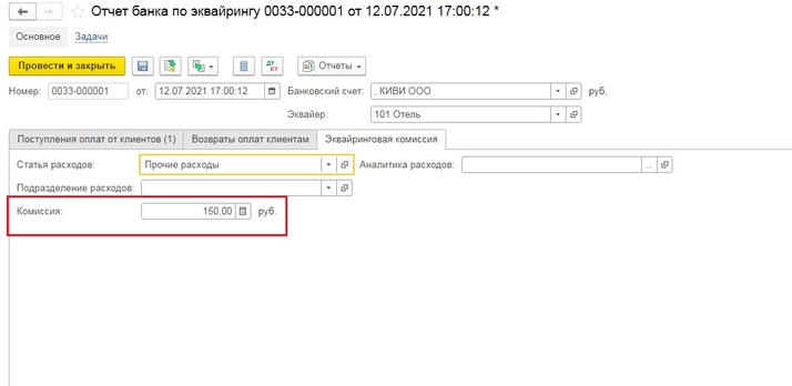 Как отразить комиссию по эквайрингу в программе 1С:Комплексная автоматизация ред. 2.4?