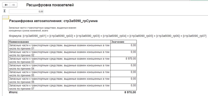 - В расшифровке автозаполнения строки 090 графы 4 можно увидеть изменения показателей валюты баланса на начало отчётного периода.
