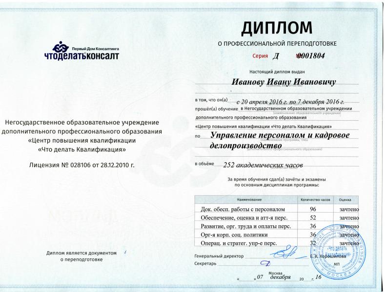 - 40 Часов ИПБ России за семинар, Диплом о переподготовке