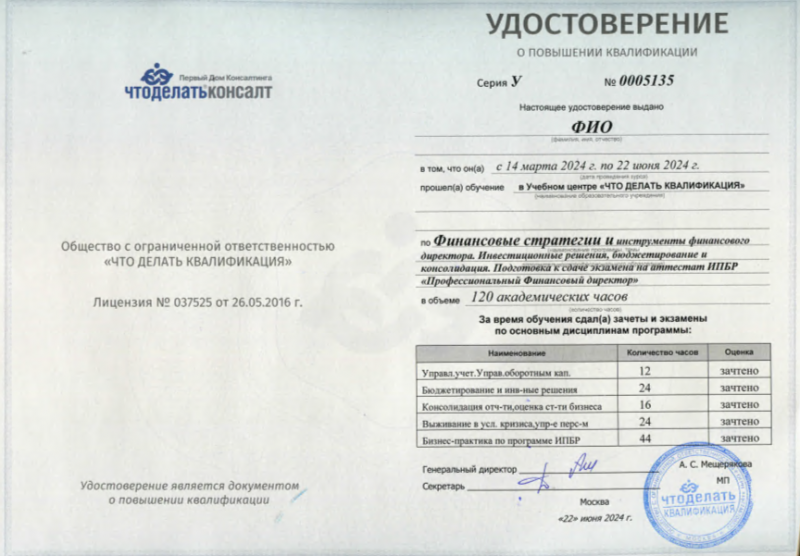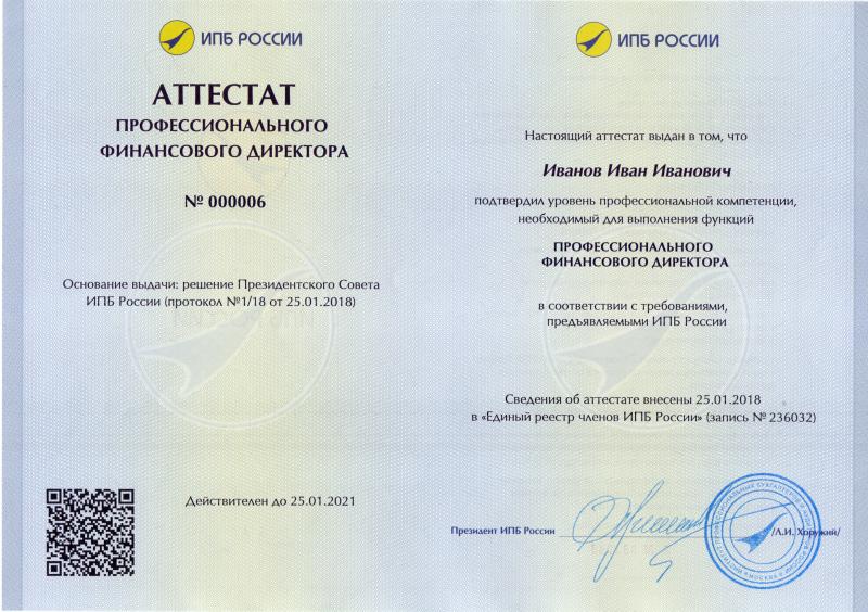 Важно: вы сможете официально сертифицировать свою новую должность, получив после окончания обучения аттестат профессионального финансового директора ИПБ России.